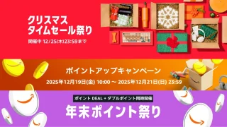 タイムセール Amazon Japan、今年最後のクリスマスタイムセール祭りに合わせて12月21日までポイントアップキャンペーンを開催。