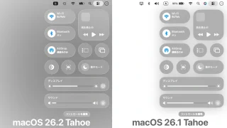 macOS 26 Tahoe macOS 26.2 Tahoeでは、コントロールセンターやゲームオーバーレイにかかるシャドウが強くなりUIが強調されるように。