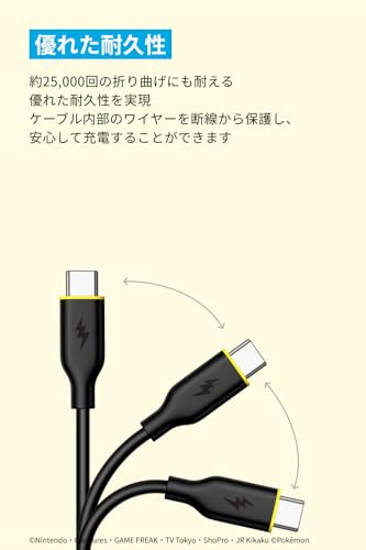 Anker タイプCケーブル ピカチュウモデルは最大100W PDに対応し絡まりにくいUSB-Cケーブル「PowerLine III Flow USB-C & USB-C ケーブル (A8553)」のピカチュウモデルで、長さは約1.8m。