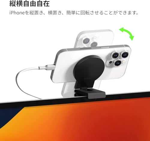 iPhoneをMacのWebカメラとして利用することができるmacOS 13 Venturaの連携カメラ機能を利用するためのマウント。iMacや外付けディスプレイに加え、1/4インチネジを搭載し3脚にも固定可能です。