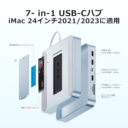 24インチiMacのスタンドに一体化できるNVMe SSDスロット付きUSB-Cハブ。