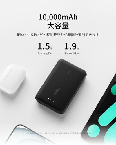 Belkin モバイルバッテリー(10000mAh, 20W, USB-Cケーブル内蔵) 4,990円 → 3,591円