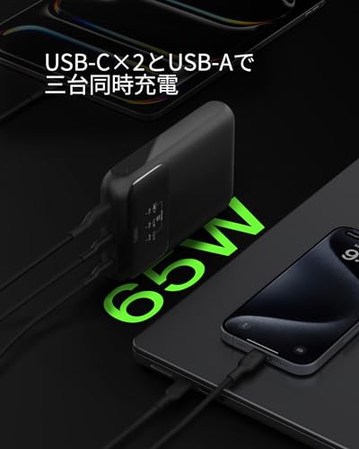 最大65W出力でMacBook Proも充電可能なフルカラーディスプレイ付きのモバイルバッテリー。
