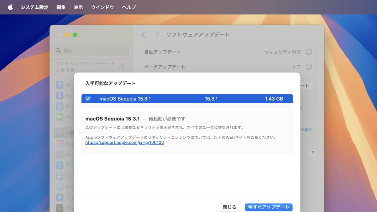 AppleがmacOS 15.3のHotfixとなる「macOS 15.3.1 Sequoia (24D70)」をリリースしています。詳細は以下から。