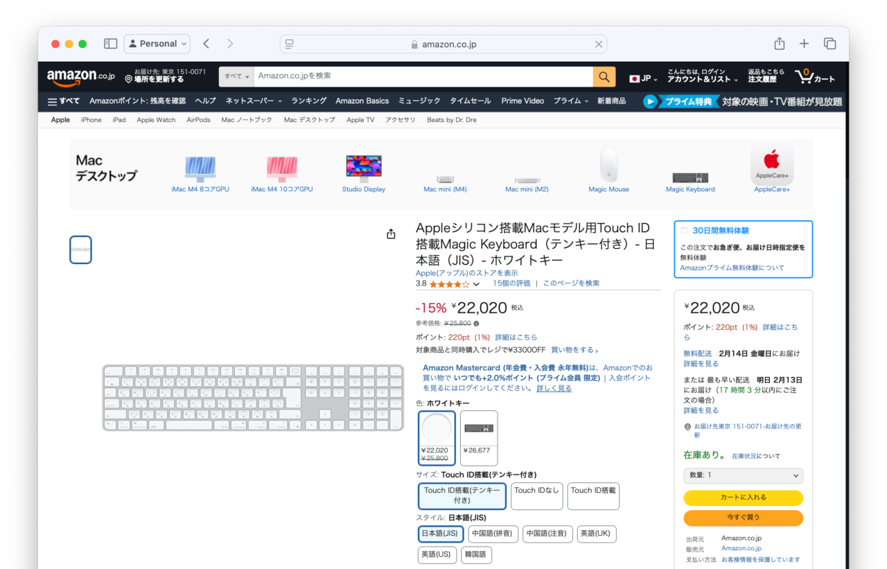 - Touch ID搭載Magic Keyboard (テンキー付き) : 25,800円 → 22,020円 – Amazon.co.jp