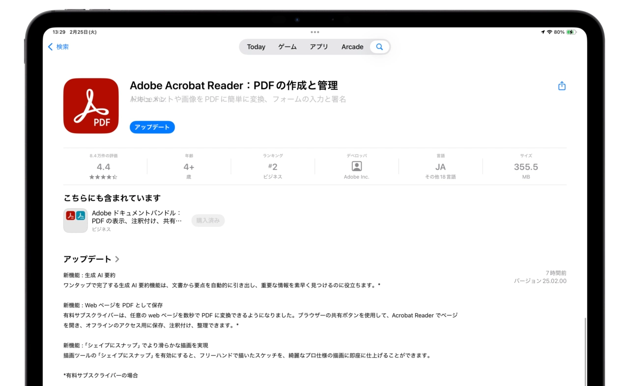 Adobe Acrobat Reader for iPhone/iPadが生成AI要約やWebページのPDF保存に対応しています。詳細は以下から。