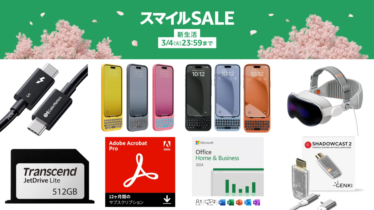 AmazonのスマイルSALE新生活で、ClicksのiPhone 15/16 Proシリーズ用キーボード付きケースやMacBook ProのSDカードスロットに収まるJetDrive Lite、Thunderbolt 5ケーブルなどがセールとなっています。詳細は以下から。