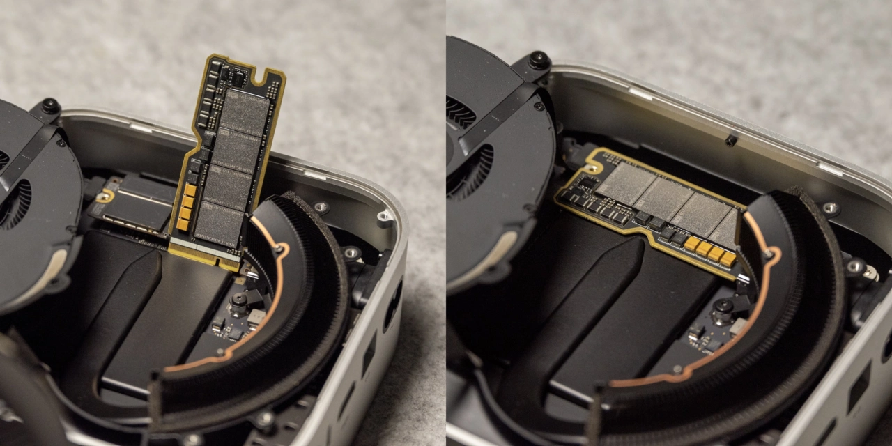 既にAppleも公式の修理マニュアルで発表している通り、Mac mini (2024)用のSSDはモジュール式でユーザーが交換/修理することが可能なものの、M4チップ搭載のMac miniとM4 Proチップ搭載のMac miniのSSDは、サイズや最大容量、接続速度が異なるため、M4チップ搭載のMac miniのSSDをM4 Proチップ搭載のMac miniで利用することは不可能となっています。