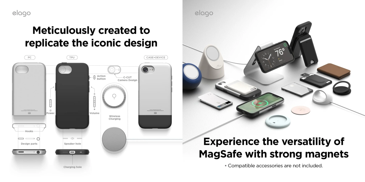 米サンディエゴのサードパーティ製メーカーelagoは、Appleが2025年02月に発売したFace IDやUSB-Cポート、48MP Fusionカメラに加えAppleがデザインした初のセルラーモデムApple C1とApple Intelligenceが利用可能なA18チップを搭載したエントリーモデルのスマートフォン「iPhone 16e」用のデザインケース「elago Magnetic Original 2G Case」を新たに発売しています。