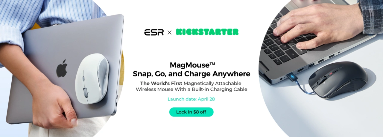 iPhone用ケースなどを販売する中国のサードパーティメーカーESRは、CES 2025でも発表していたマグネットベースに素早く取り付けて持ち運べるUSB-C充電式のワイヤレスマウス「ESR HaloLock MagMouse (以下、MagMouse)」の発売キャンペーンを04月28日よりクラウドファンディングサイトKickstarterで開催すると発表しています。