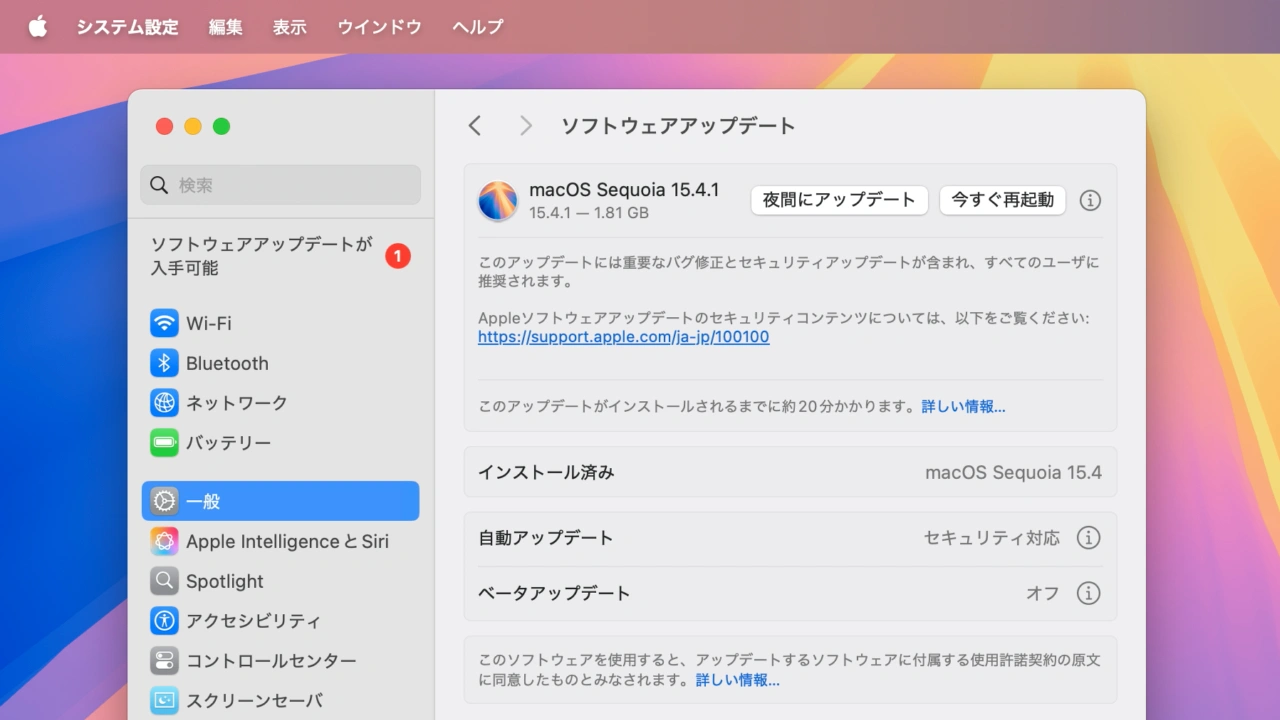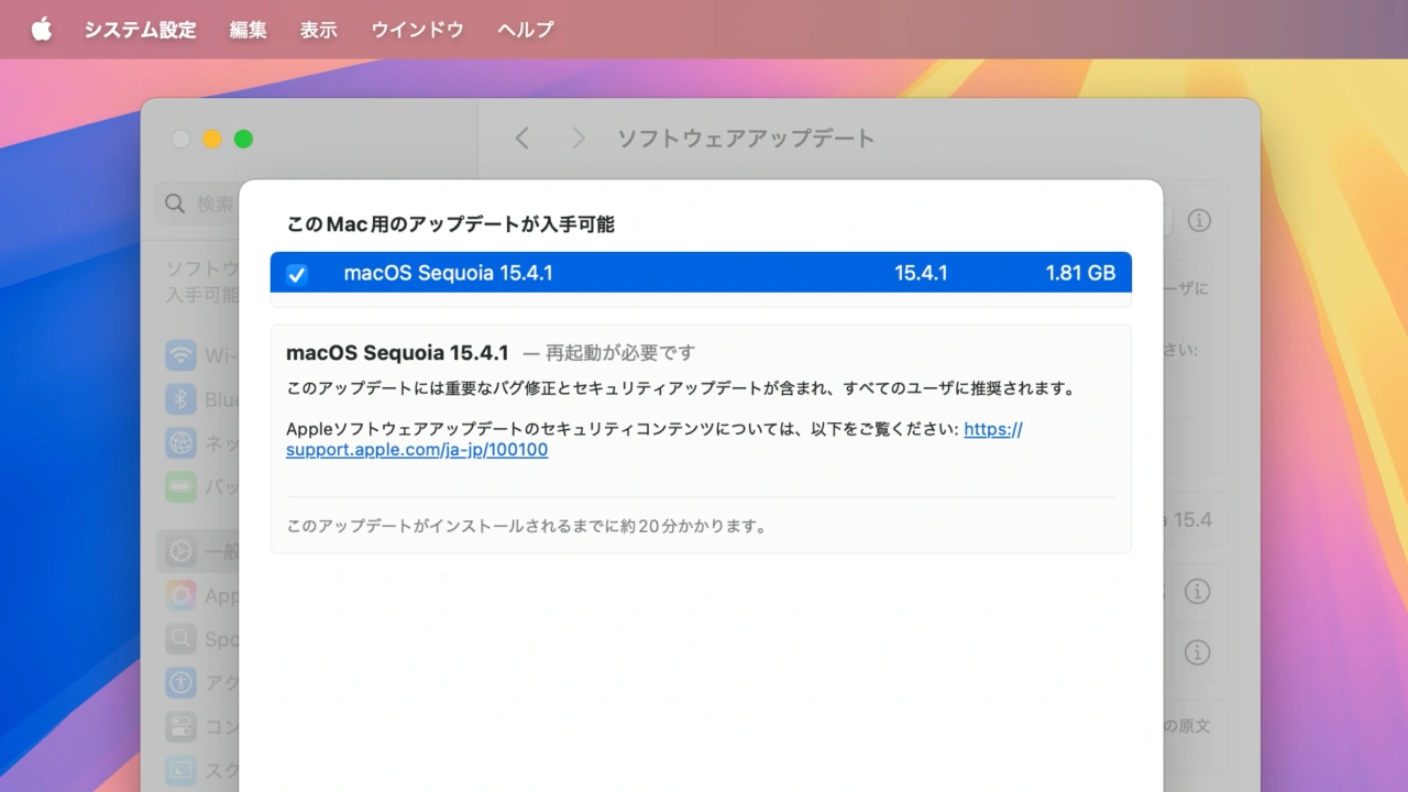 macOS Sequoia 15.4.1 – 再起動が必要です。