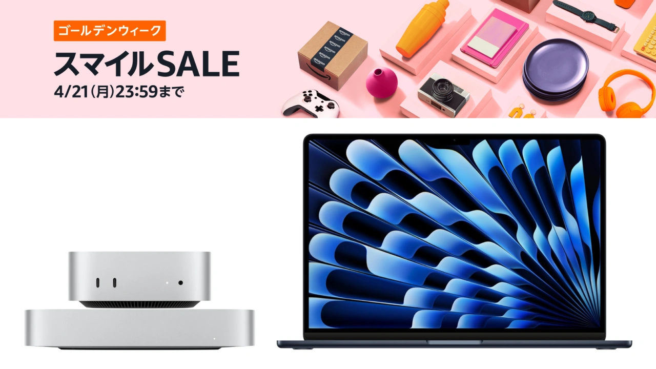 Amazon Japanは日本時間2025年04月18日09時より、今月末から始まるゴールデンウィークに必要なレジャー用品や日用品などをを特別価格で販売する「ゴールデンウィーク・スマイルSALE」を開催していますが、このセールで、2024年11月に発売された「Mac mini (2024)」が初のスマイルセールとなっています。