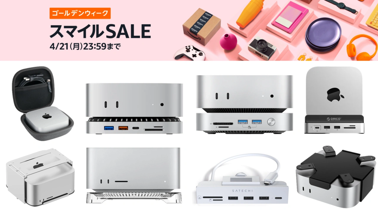 AmazonのGWスマイルSALEで、ORICOやRayCue、Satechi、SpigenのMac mini/Studio用USB-Cハブやケース、スタンドなどが特選タイムセールとなっています。詳細は以下から。