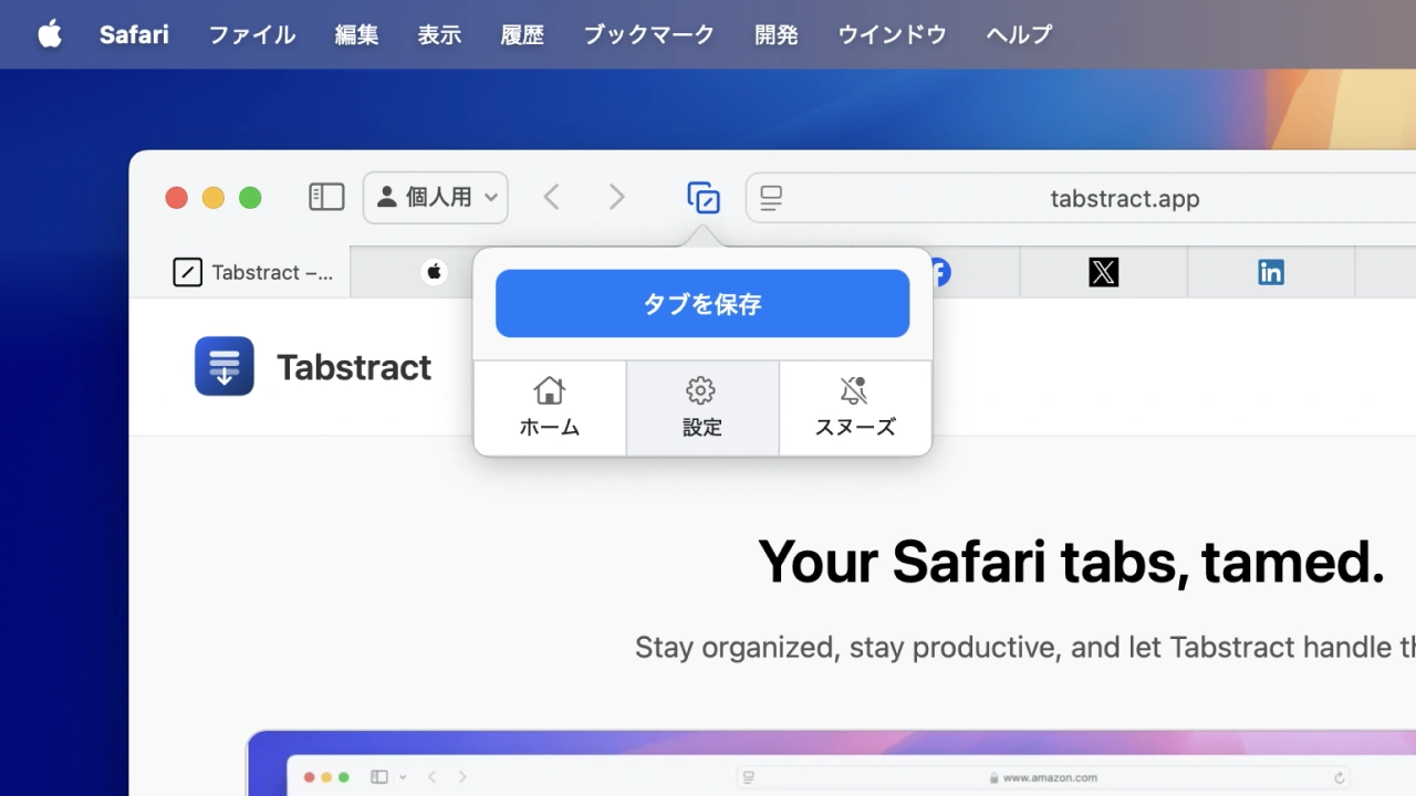 Tabstract is the only tab saver built to feel native in Safari. Save your open tabs in a click, clear the clutter, and restore them whenever you need them.