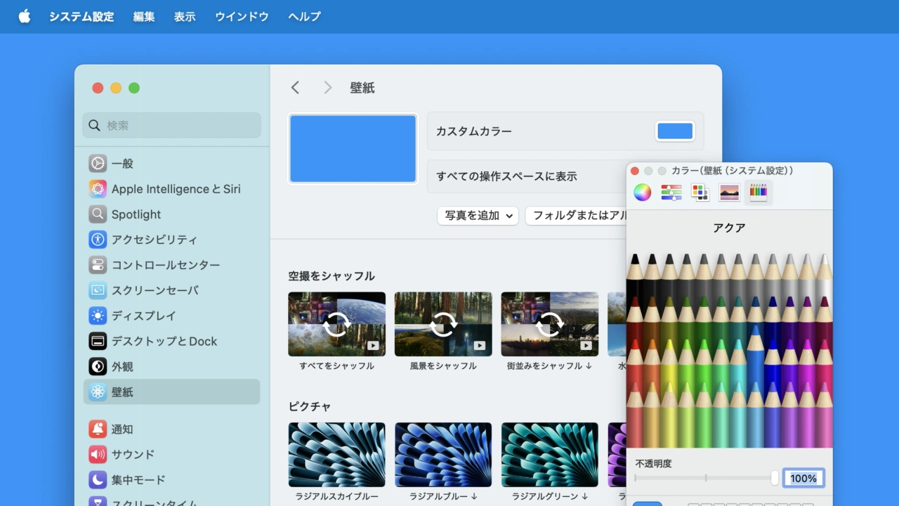AppleがmacOS 15.4.1 Sequoiaでカラーピッカーで選択したカスタムカラーの壁紙が真っ白になってしまう不具合を修正しています。詳細は以下から。