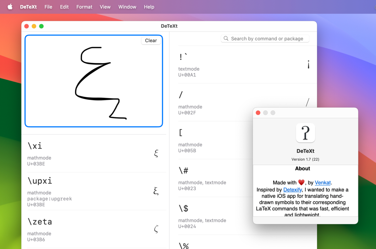 手書きの数学記号やシンボルを判定しLaTeXコマンドを表示してくれる「DeTeXt for Mac」がUIを刷新し、文字/コマンド/Unicodeがコピーされた際のポップアップ表示機能を追加しています。詳細は以下から。