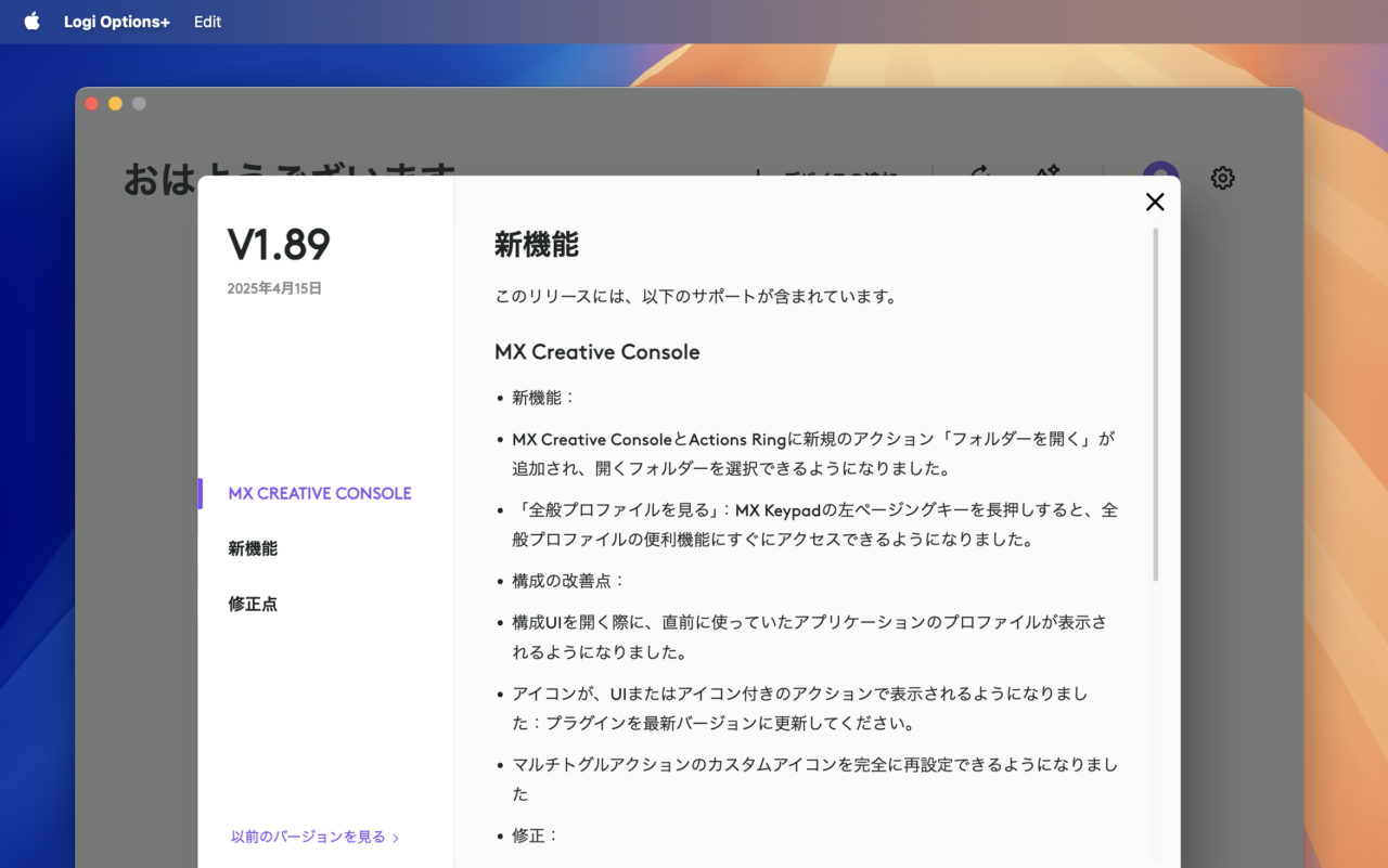 Logi Options+ v1.89のリリースノート