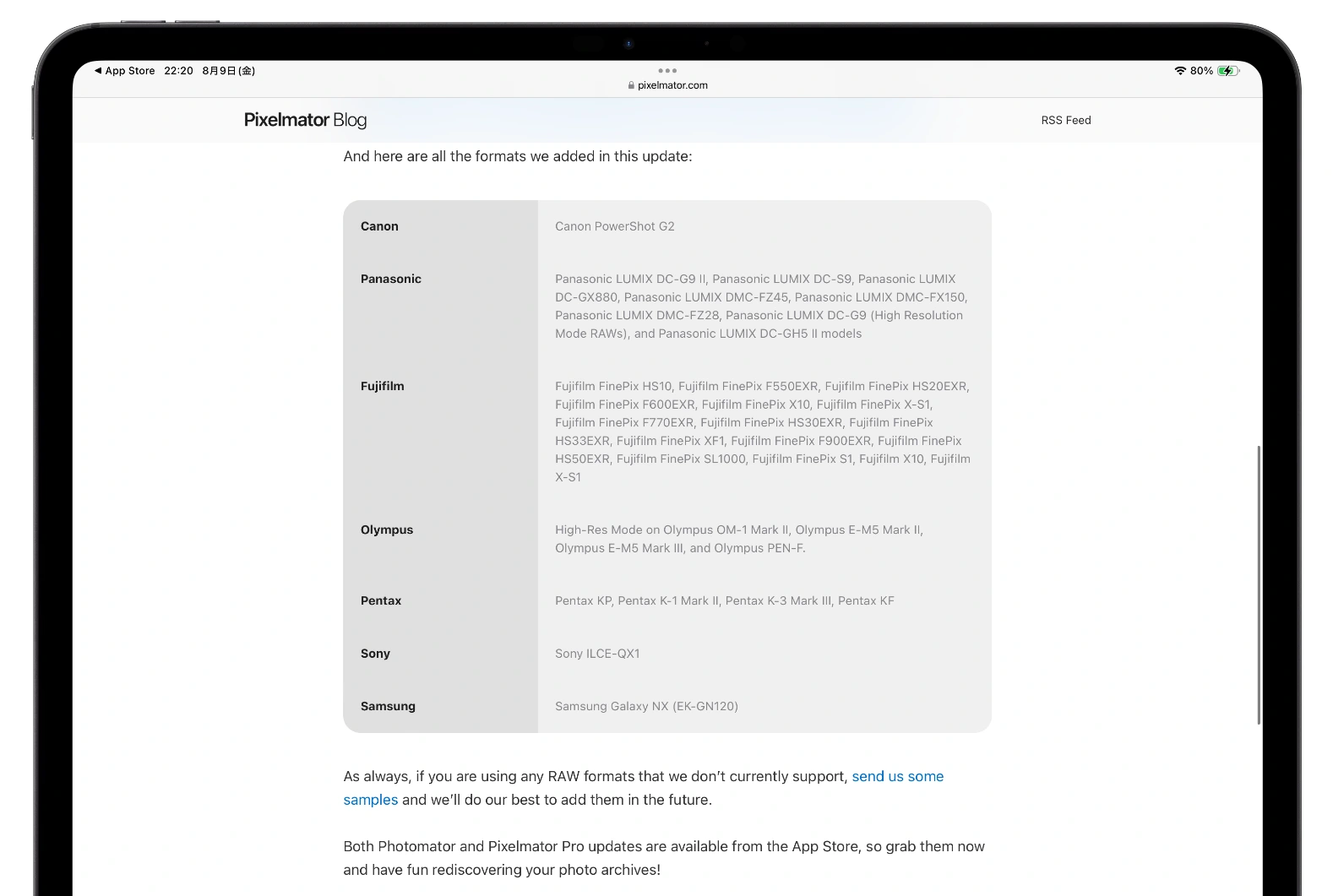 Pixelmator Pro and Photomator add RAW support for classic camera modelsより