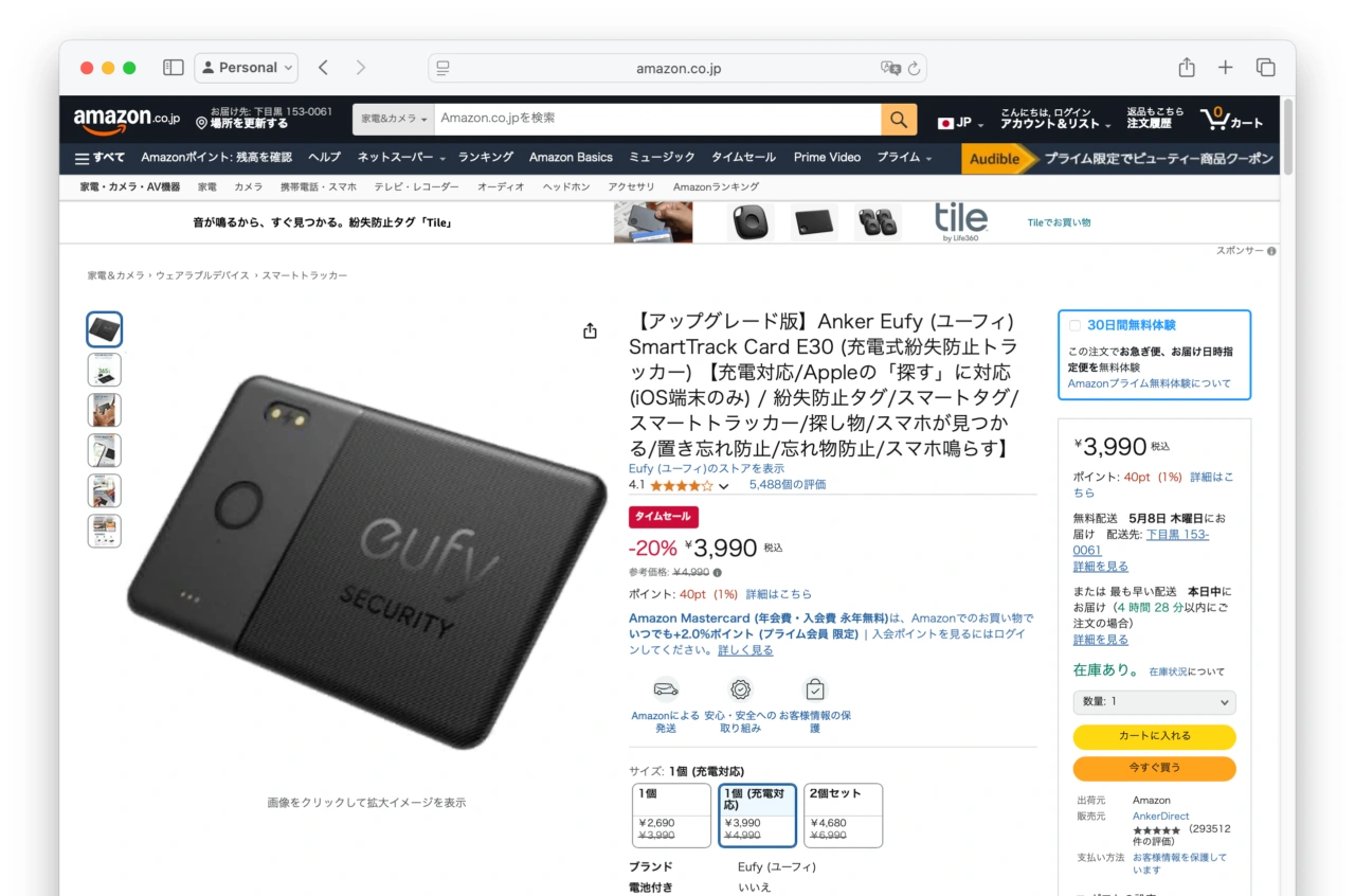 - 【アップグレード版】Anker Eufy SmartTrack Card E30 : 4,990円 → 3,990円 – Amazon.co.jp
