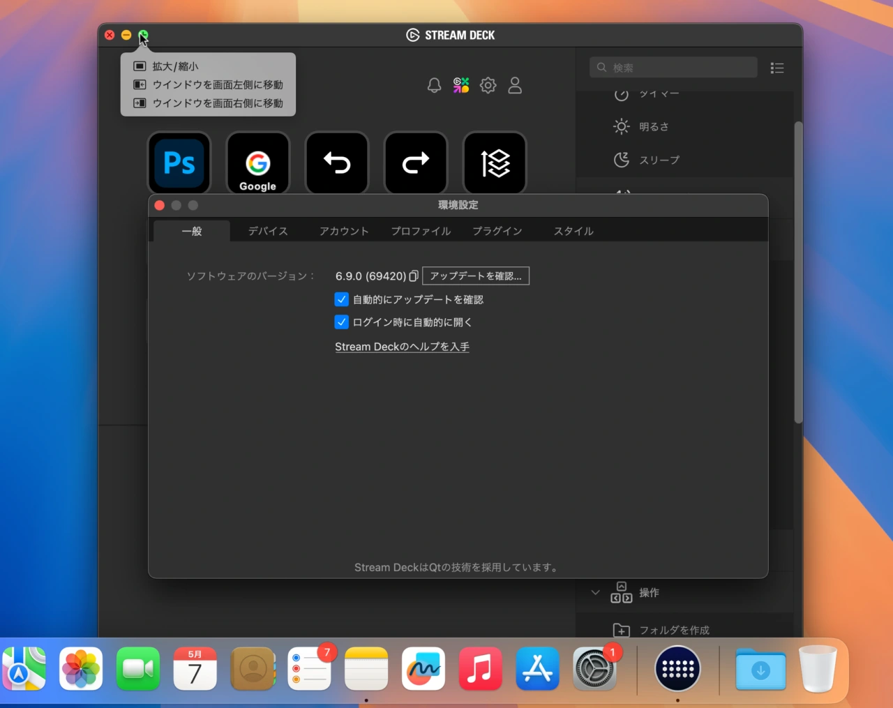 macOSではDockにアプリケーションアイコンが表示されるようになり、緑ボタンでの最大化が可能になっているので、Stream Deckユーザーの方はチェックしてみてください。