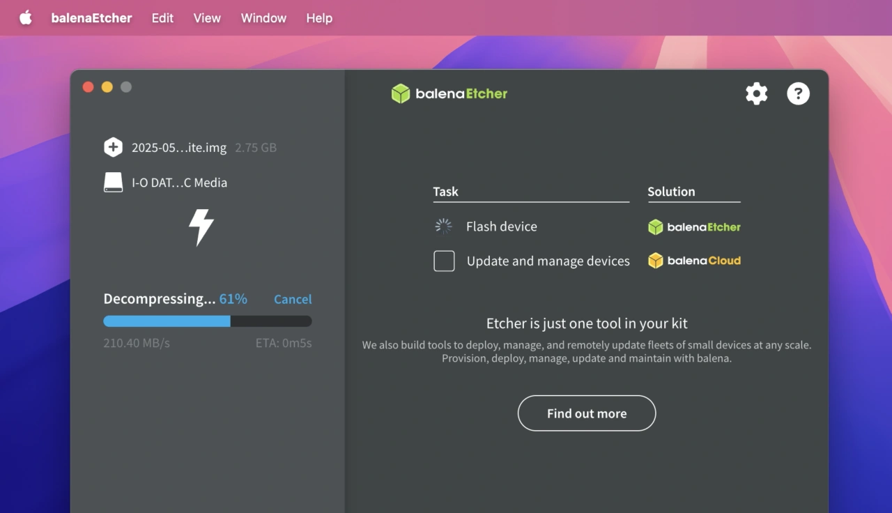 balenaEtcher(旧Etcher)はIoTデバイスの管理プラットフォームを提供する英Balena Ltd(旧Resin.io)が2016年からオープンソースで開発しているOSのイメージファイルから起動可能なSD/USBメディアを作成できるツールで、