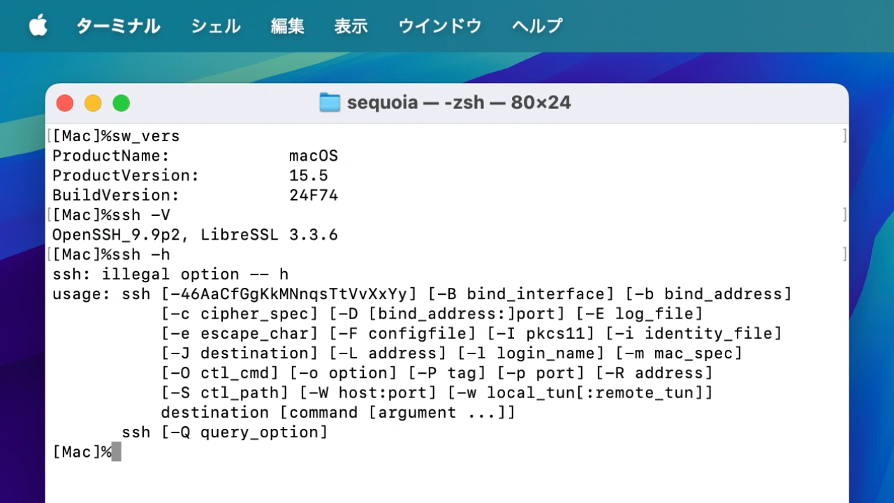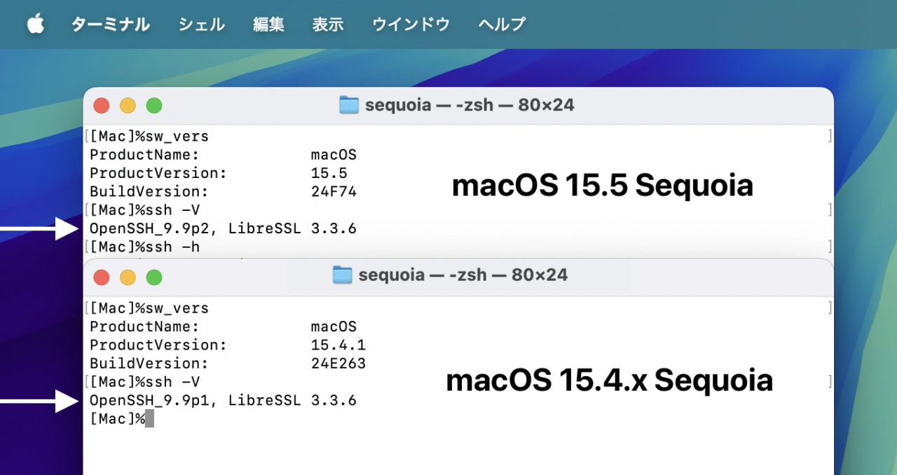 macOS 15.5のOpenSSH v9.9p2とmacOS 15.4のOpenSSH v9.9p1