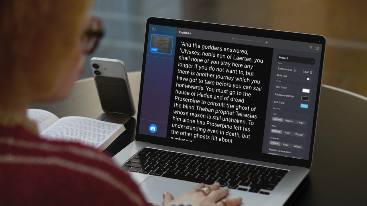 The Magnifier app for Mac connects to a user’s camera so they can zoom in on their surroundings, such as a screen or whiteboard. Magnifier works with Continuity Camera on iPhone as well as attached USB cameras, and supports reading documents using Desk View.Apple unveils powerful accessibility features coming later this year – Apple
