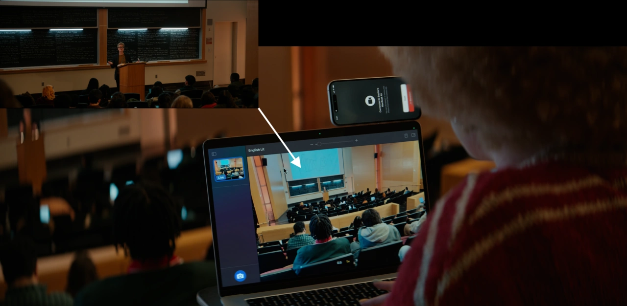 Macに導入される拡大鏡アプリは、iPhoneをWebカメラのように利用できる連係カメラやUSB接続のカメラを利用し、大学の大講義室など遠く離れたスクリーンやホワイトボード/黒板をMacの画面に拡大して映し出すことが可能になるそうで、