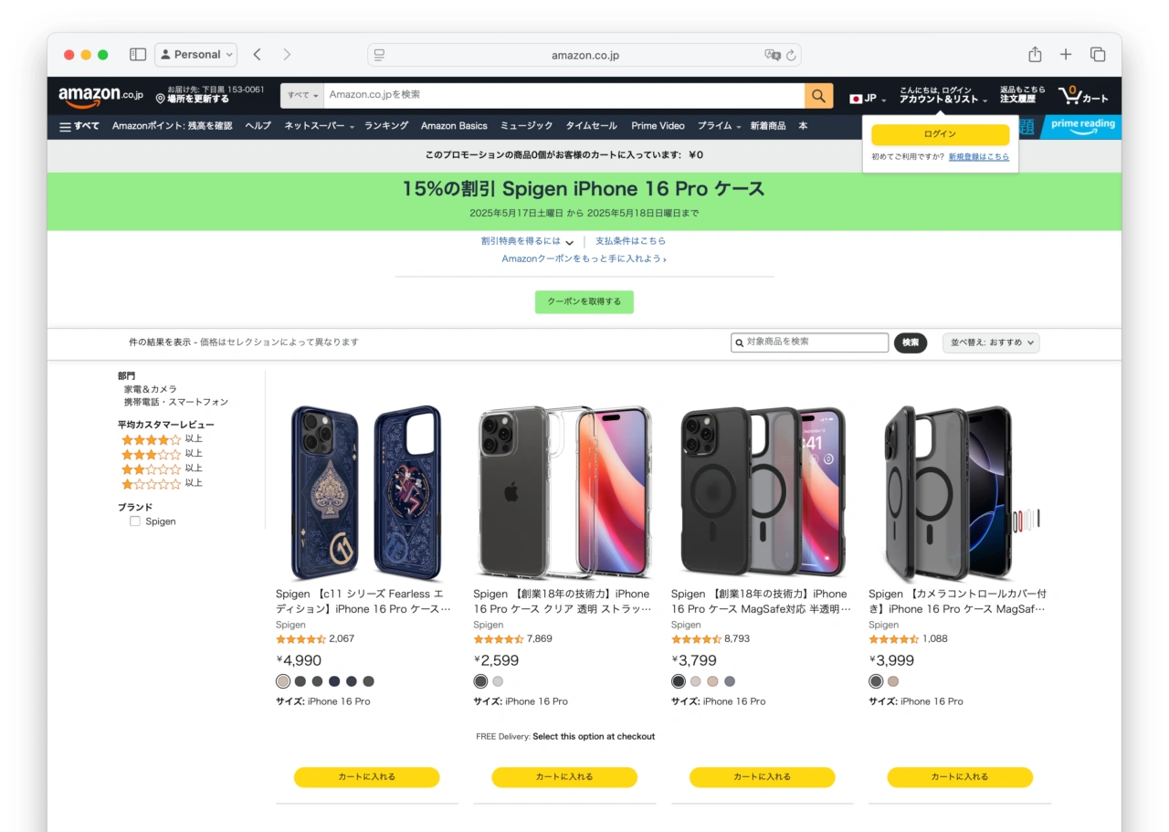 2025年5月17日土曜日 から 2025年5月18日日曜日までSpigen iPhone 16 Pro ケース 15%OFF – Amazon.co.jp