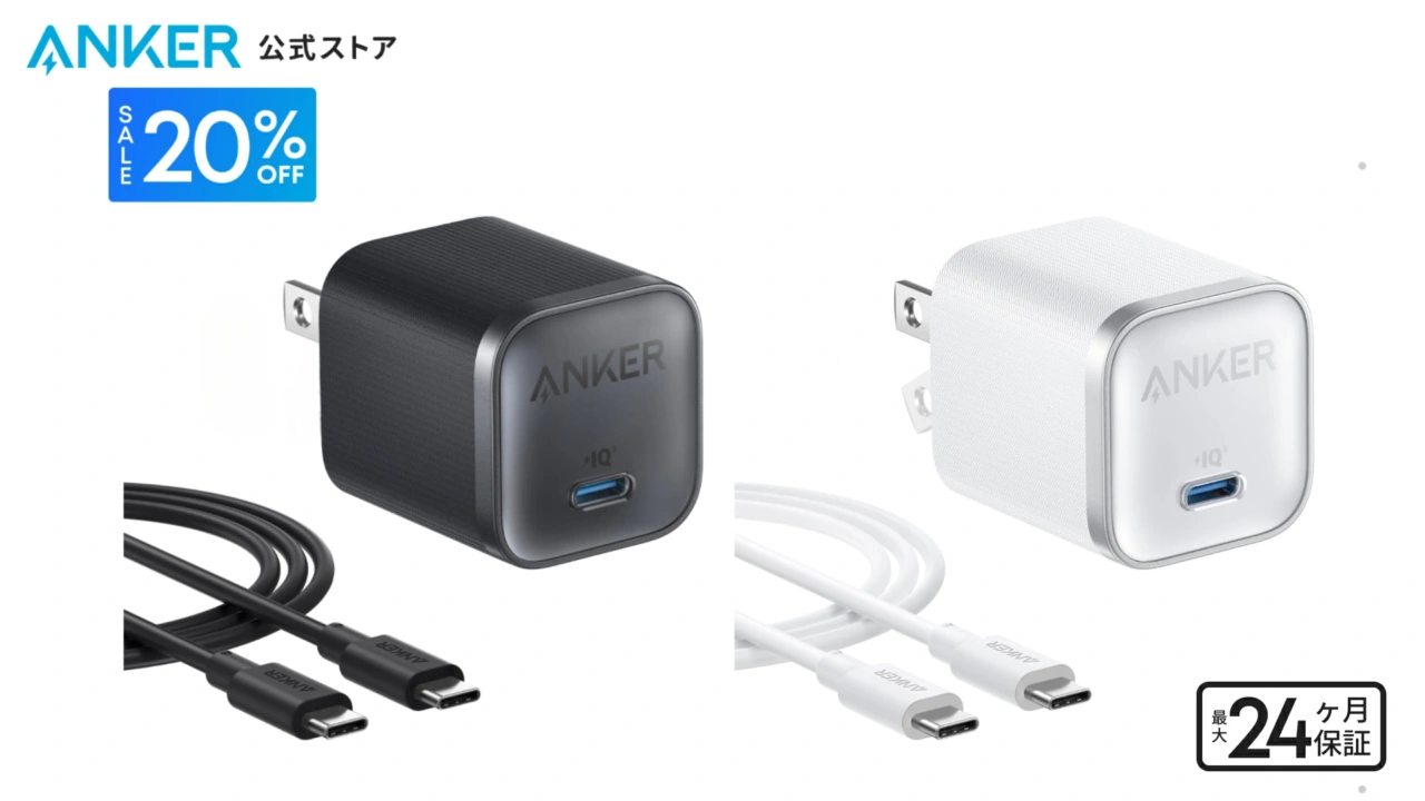 - Anker Nano Charger (45W) with USB-C ケーブル : 3,990円 → 2,392円 – Amazon.co.jp