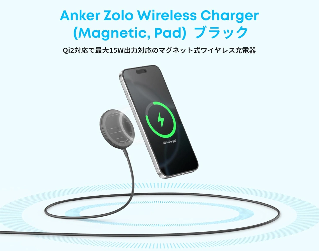 - Anker Zolo Wireless Charger (Magnetic, Pad) : 2,990円 → 2,392円 – Amazon.co.jp