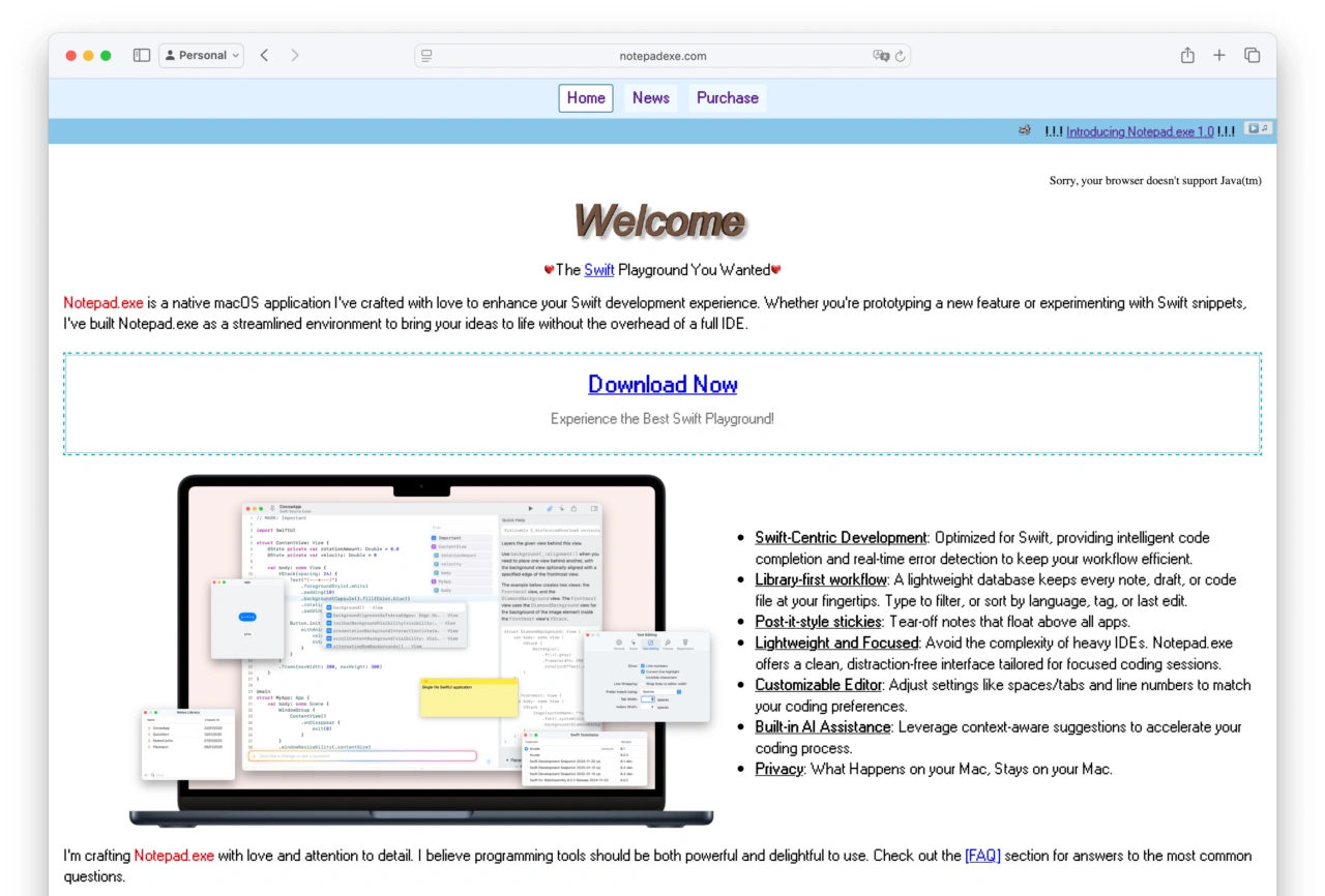 Have you ever wanted to quickly test a Swift idea without firing up Xcode and creating an entire project? Or found yourself needing a lightweight environment to experiment with code snippets that you could organize and reference later? That’s exactly why I built Notepad.exe – to bridge the gap between heavyweight IDEs and basic text editors.