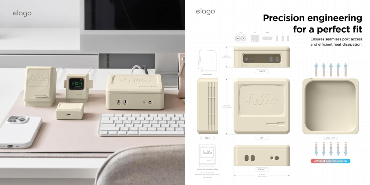 Elevate your setup with this nostalgic, retro-inspired design, perfectly compatible with the 2024 Apple Mac Mini. Brought to you by elago, this timeless piece fuses the charm of a classic computer with cutting-edge convenience—so you can enjoy the best of old tech and new tech in today’s modern world.