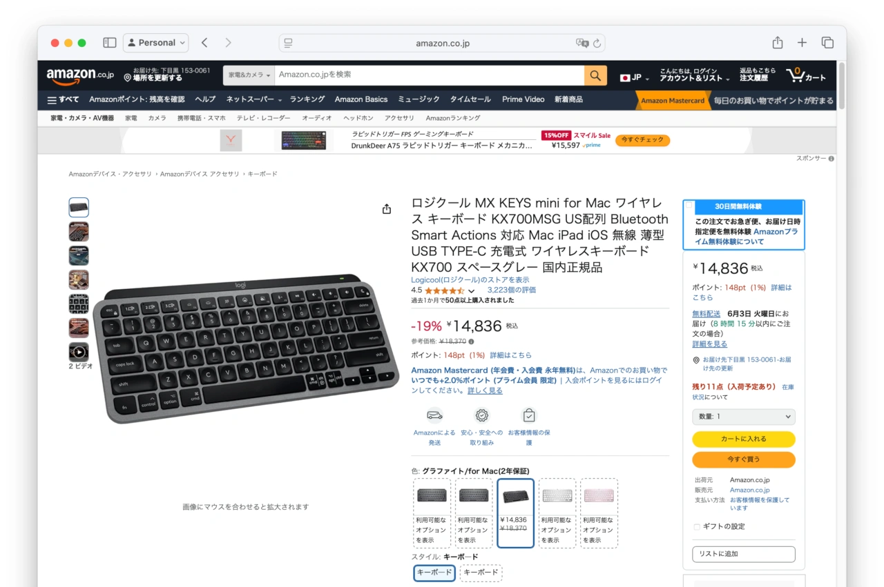 Amazon Japanでは日本時間2025年05月30日09時より、毎月恒例の「AmazonスマイルSALE」が開催されていますが、このスマイルSALEでに合わせてスイスLogitech (日本ではLogicool)が2024年07月に発売した、
