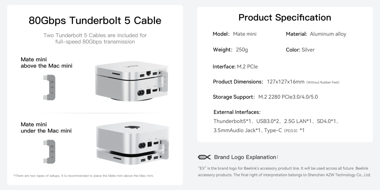 Beelink Mate mini 80Gbps Thunderbolt 5 Dock for Mac mini M4 – Beelink