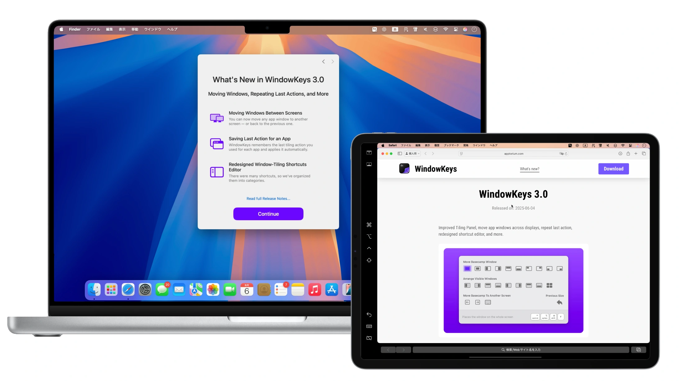 WindowKeys v3.0のシステム要件はmacOS 15.1 Sequoia以降のIntel/Apple Silicon Macで、アプリはApptoriumの公式サイトで無料で公開されているので、macOS Sequoiaのタイル表示機能では物足りない方は試してみてください。