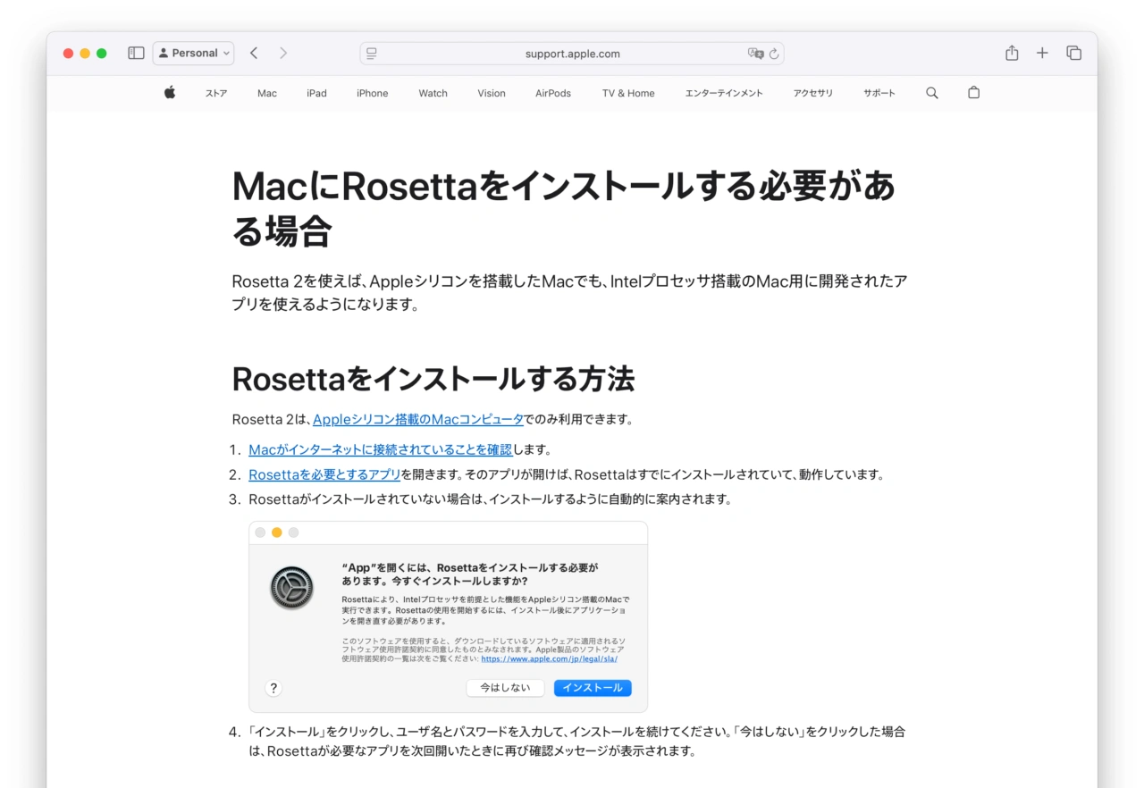 - MacにRosettaをインストールする必要がある場合 – Apple