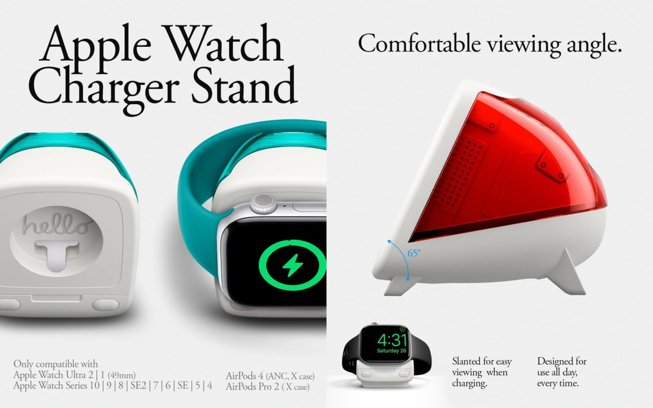 Apple Watch Classic C1 Charger Standは、内部にApple Watch用のワイヤレス充電器を内蔵できるスタンドで、Apple Watch Series 4/SE/Ultra以降の44/40mm、42/46mm、49mmモデルやAirPods 4 (ANC含む)、AirPods Pro 2などを充電することが可能。