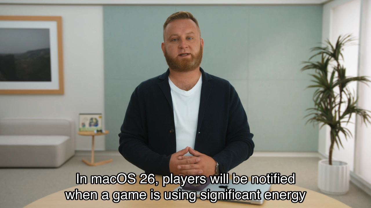 macOS Tahoeでは ゲーム用の低電力モードが最適化されていますデベロッパは低電力モード時に使える より効率的なゲーム設定をサポートすることでバッテリー寿命をさらに延長できます