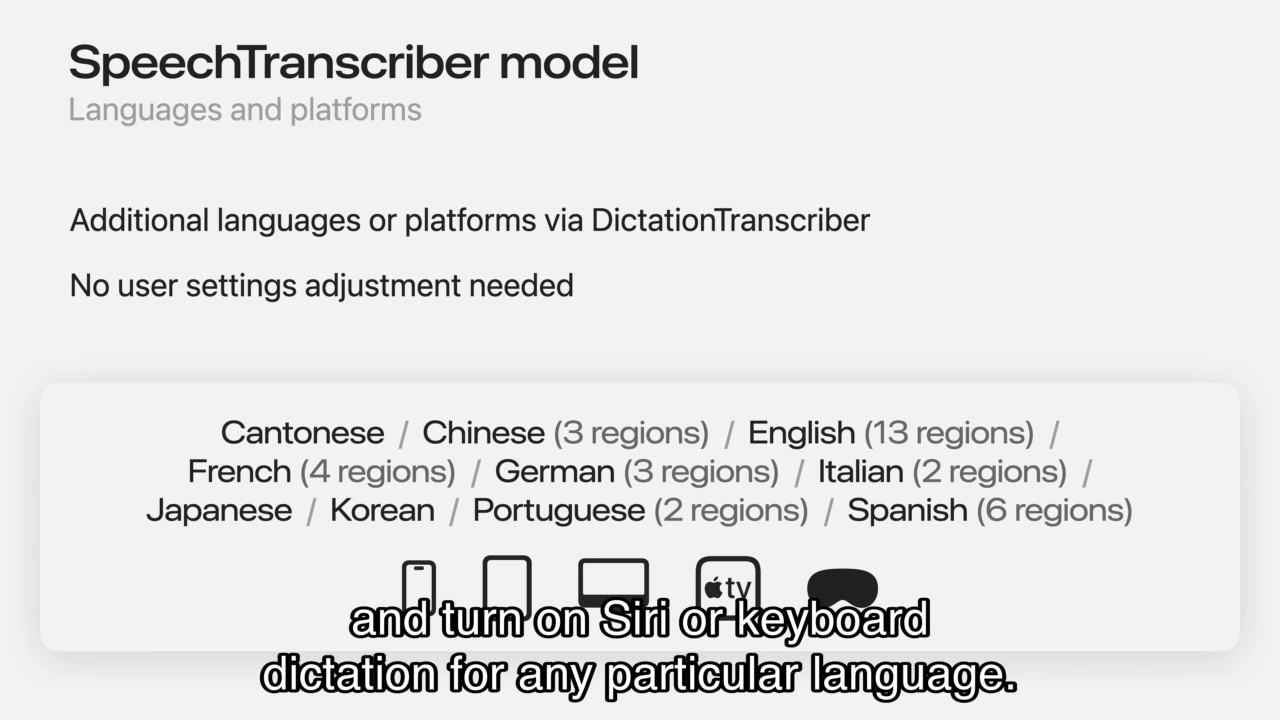 Appleの新しい音声文字起こし機能はiOS 18.4で日本語にも対応しているため、SpeechTranscriberモデルも日本語のほか、広東語と中国語、英語、フランス語、ドイツ語、イタリア語、韓国語、ポルトガル語、スペイン語に対応し、MacやiPhone/iPad、Apple TV、Vision Pro (Apple Watch以外)のAppleデバイスで利用でき、
