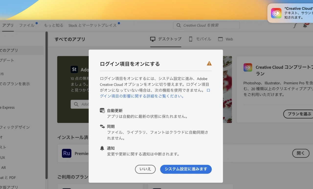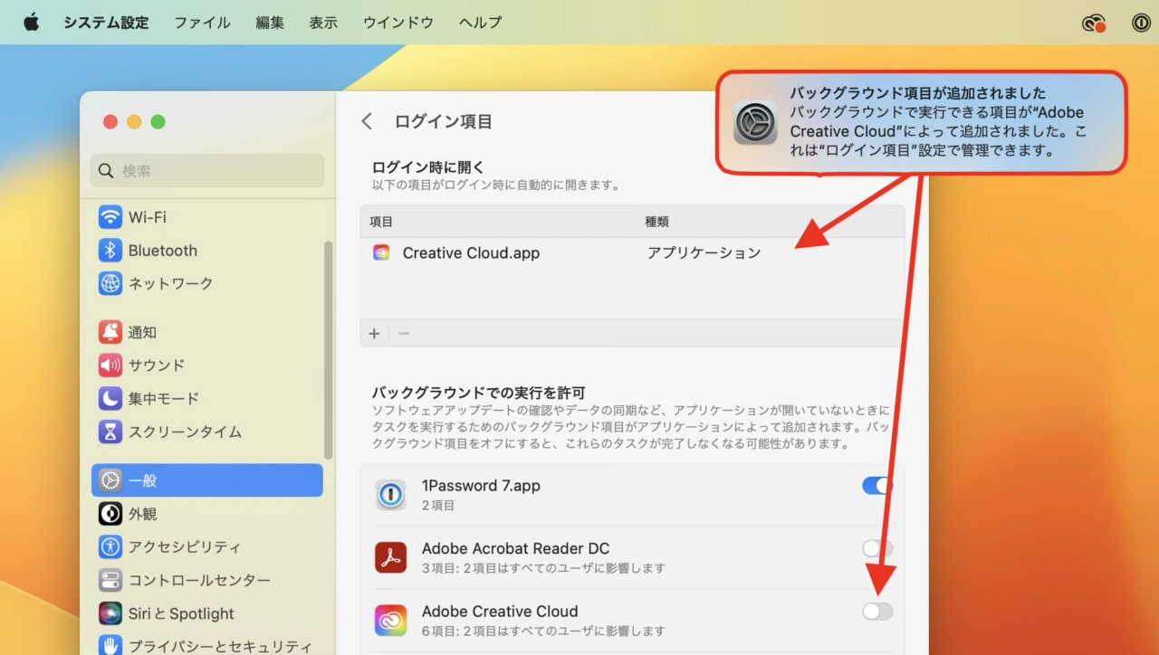 macOS 13 Venturaで導入されたログイン項目通知について対応したAdobe CC