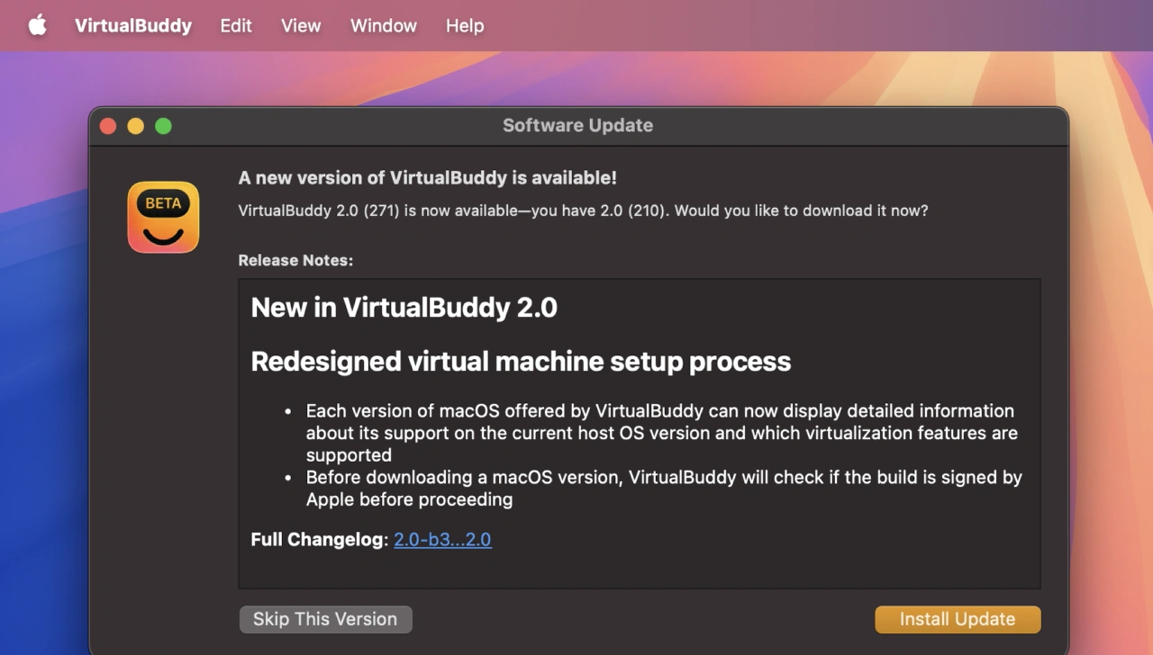 - Each version of macOS offered by VirtualBuddy can now display detailed information about its support on the current host OS version and which virtualization features are supported