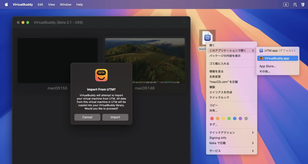 また、現在Beta 1が公開されている「VirtualBuddy v2.1」では、QEMUによるエミュレーションとAVFによる仮想マシン作成に対応したオープンソースの仮想化ソフトウェア「UTM」で作成したmacOS仮想マシンのインポートにも対応しているので、仮想マシンを整理したい方は試してみてください。
