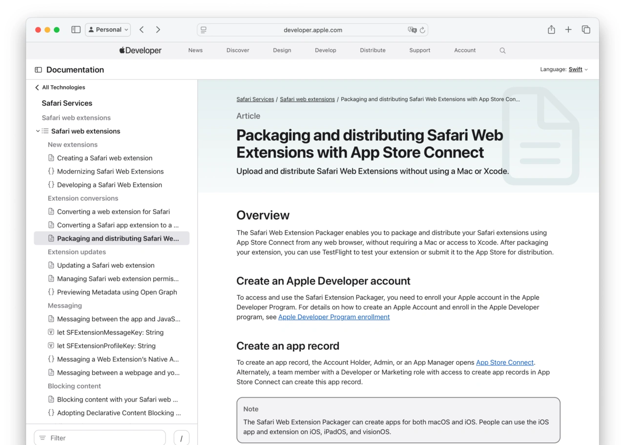 - Packaging and distributing Safari Web Extensions with App Store Connect – Apple Developer Documentation