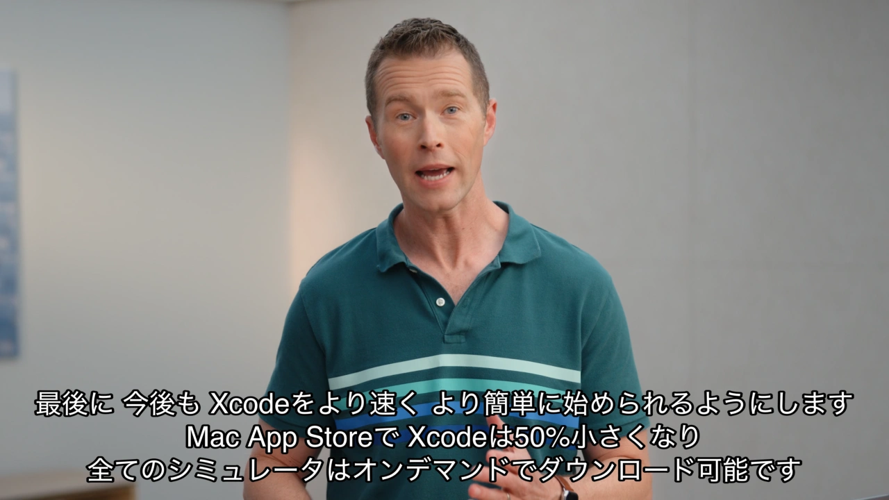 最後に 今後Xcodeをより速く より簡単に始められるようにします。Mac App StoreでXcodeは50%小さくなり全てのシミュレータはオンデマンドでダウンロード可能です。つまり すぐ使えて必要なプラットフォームを適切な時にインストールできます。