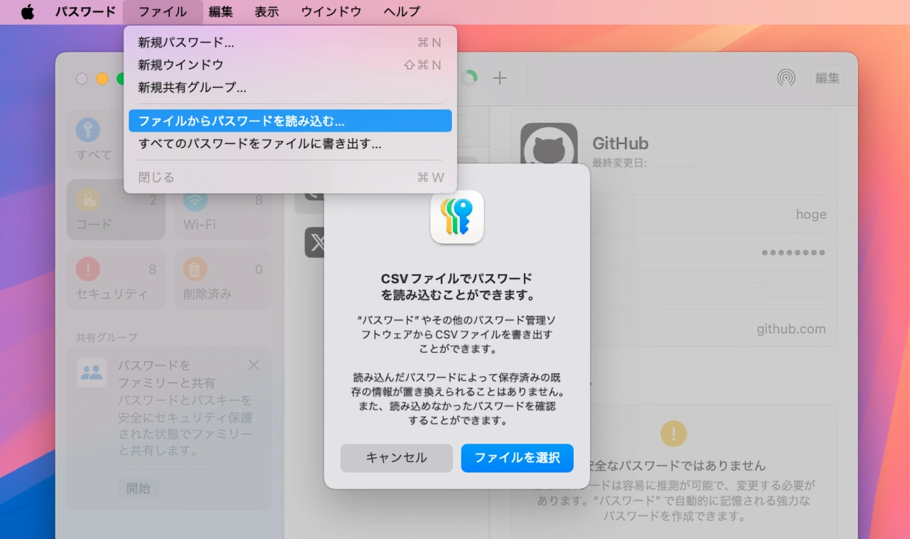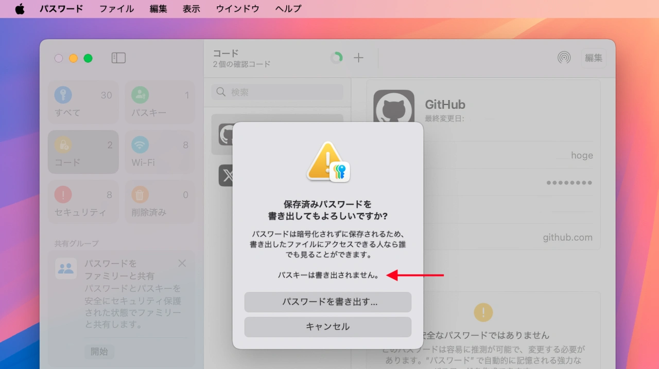 Appleのパスワードアプリの書き出し機能