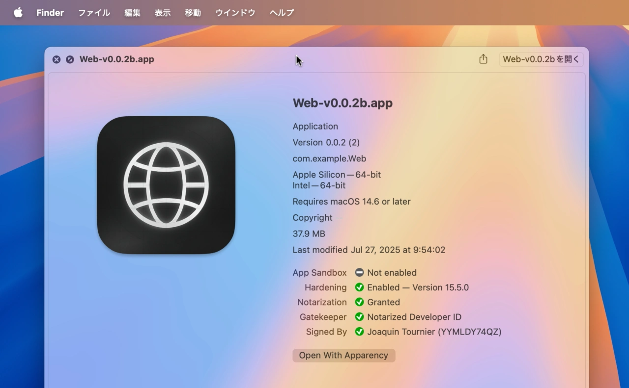 Webのシステム要件はmacOS 14 Sonoma以降でApple Mチップを搭載したMacで、AI機能以外にもタブ機能やショートカットキー、シークレットモード、パスワードアプリとの連携機能を備えており、アプリはオーpんソース(MITライセンス)で開発され、公式リポジトリからダウンロードできるようになっているので、気になる方は試してみてください。