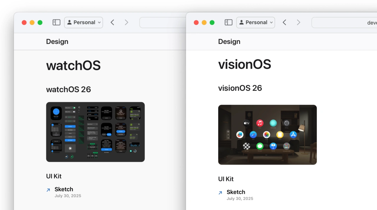 Appleが開発者向けに「watchOS 26」と「visionOS 26」のUI KitをSketch形式で公開しています。詳細は以下から。