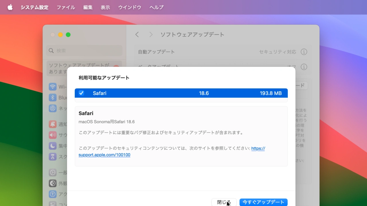 AppleがmacOS 13 VenturaとmacOS 14 Sonoma向けに複数の脆弱性を修正した「Safari 18.6」をリリースしています。詳細は以下から。