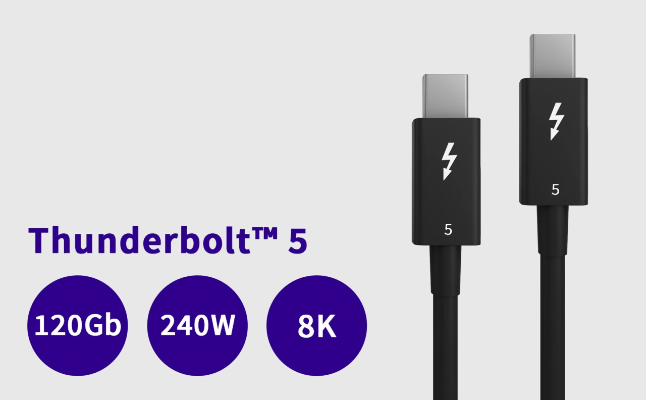 住友電工のThunderbolt 5ケーブルは、Intel Thunderbolt認証を取得したThunderbolt 5ケーブルで、最大80Gbpsの双方向データ転送に加え、片方向(Bandwidth Boost)モードでは最大120Gbpsで8Kディスプレイの出力が可能で、USB Power Delivery EPR*対応のデバイスでは最大240Wでの電力供給が可能。